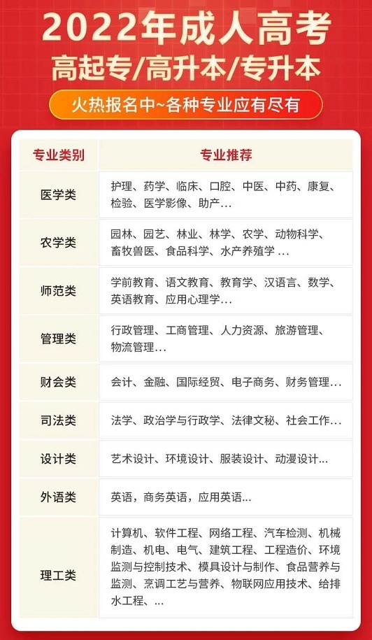 某些国企或者大型企业在招聘的时候,会对具体岗位要求对口的专业,不具备条件的考生要跨过这个门槛,参加成人高考选择相应的专业就是个很好的选择。