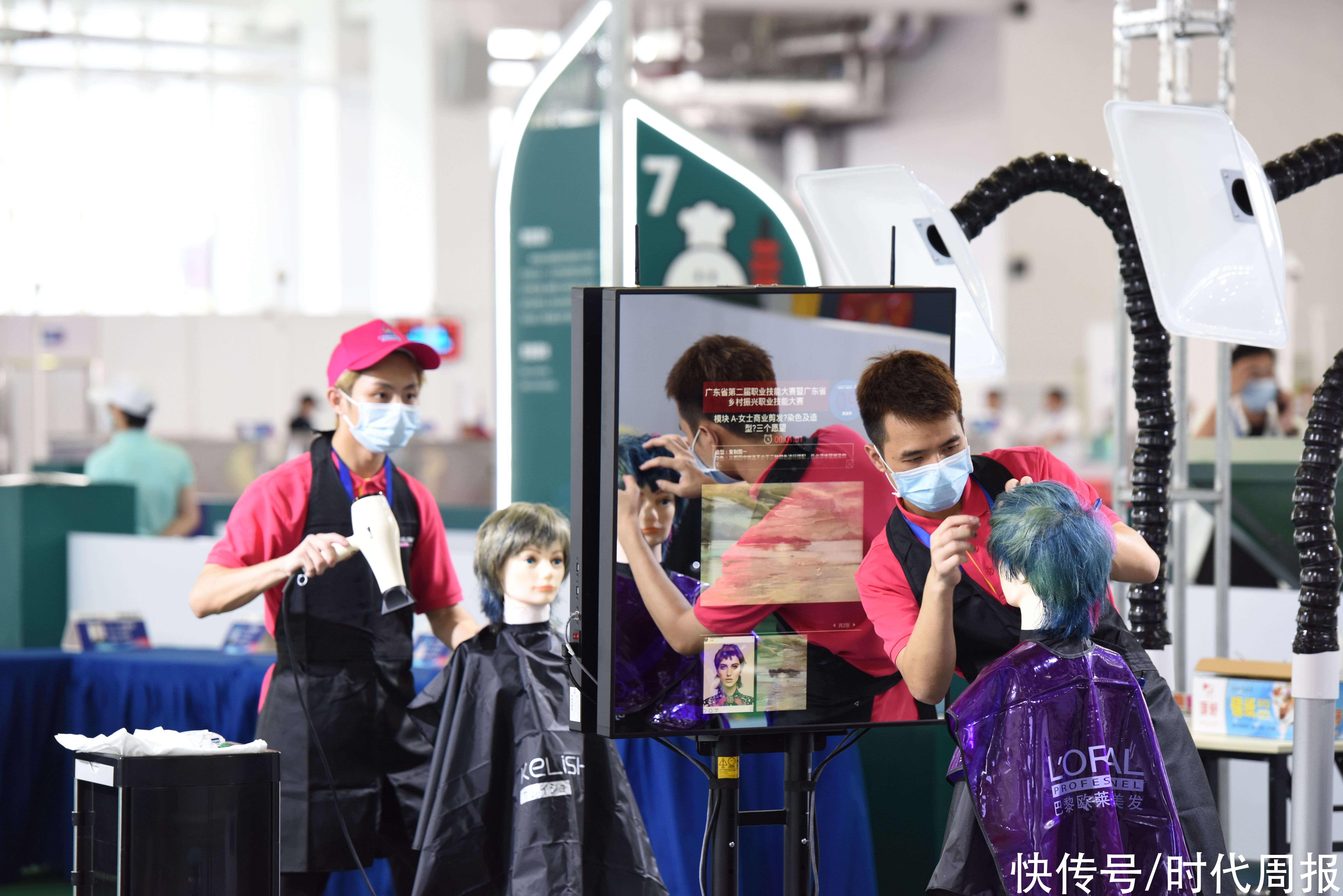 8月9日上午,时代周报记者在现场看到,理发、汽车修理、电子商务师等赛事项目激烈进行。每个赛场都有完善的比赛设施、规则,如电子商务师的比赛现场,并排摆放数十个直播专用打光灯、话筒、所展商品等。